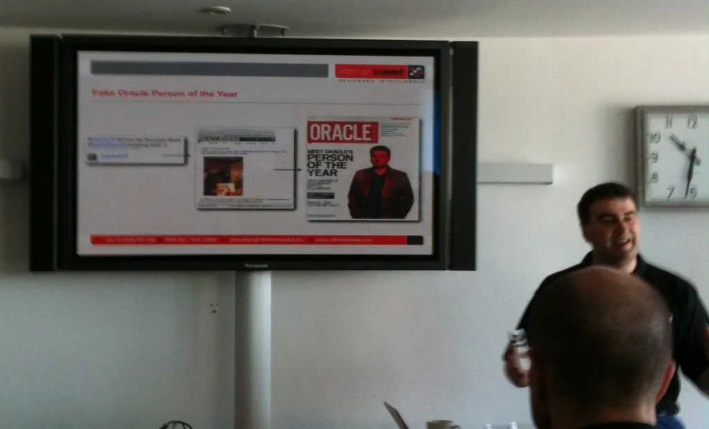 Mark did the next presentation, with a detailed investigation of the guts of the BI Server. Kurt Wolff, one of the original masterminds behind OBIEE’s ancestors, was in the audience and it was a fascinating and rare opportunity to get validation and thoughts “from the horses mouth” so-to-speak. It was yet another well-researched presentation and of the hardcore geekery level that I think everyone in the room appreciated. I think the BI Forum has a long and thriving future ahead of it on the basis of the kind of things being presented. At a larger conference the audience would probably be diluted to the level that something so in-depth would be lost on them. Mark also tried to put to rest the “Oracle Person of the Year” saga, a rumour which oraclenerd started a few weeks ago: