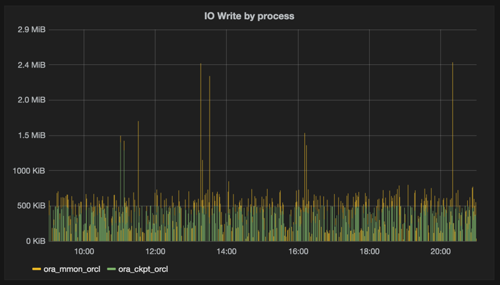 while [ 1 -eq 1 ]; do sudo iotop -n 1 -k -qqq -o|awk '{print "io_read_kbs,pid="$1",process="$12" value="$4"\nio_write_kbs,pid="$1",process="$12" value="$6}'|curl -i -XPOST 'http://localhost:8086/write?db=io' --data-binary @-;sleep 1;done