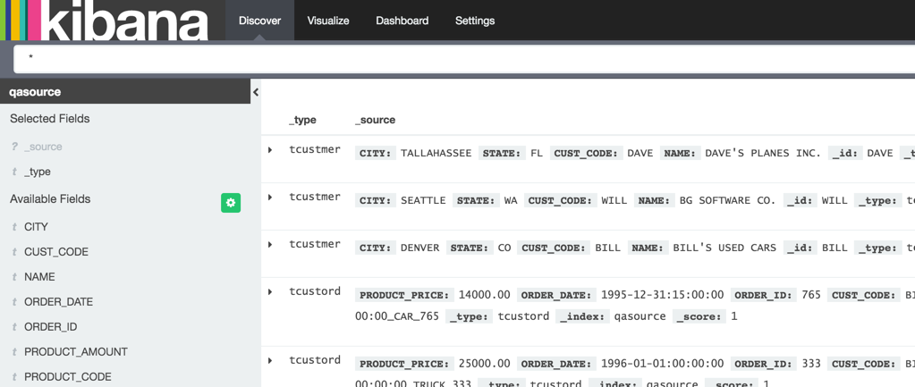 logsis the index mapping loaded through OGG –> Kafka –> Logstash –> Elasticsearchmovieis the index mapping loaded through the new adaptor, OGG –> Elasticsearch