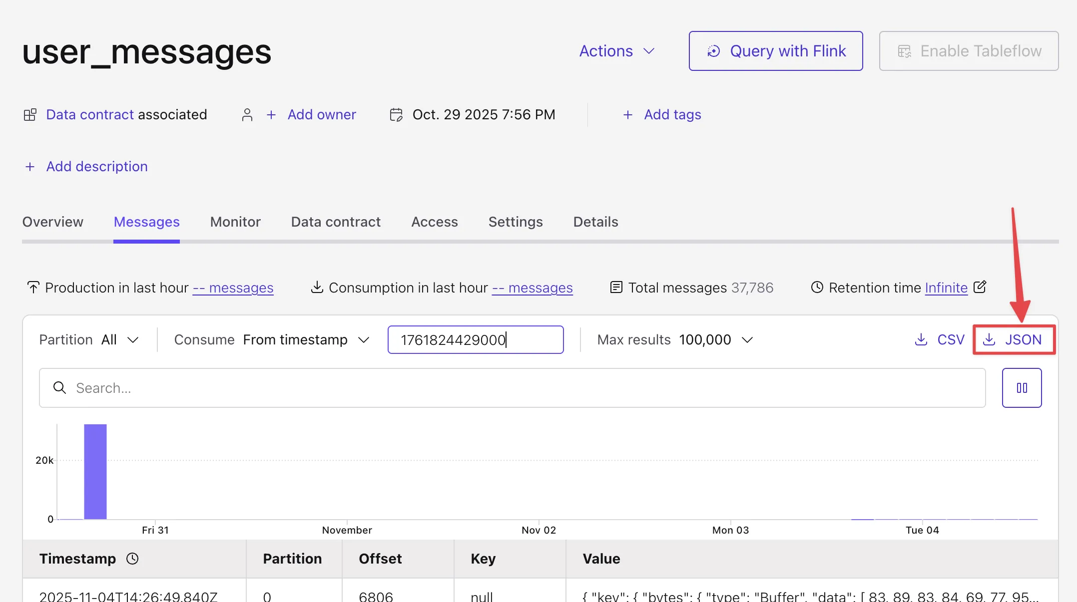 For the dashboard we are going to use Flink, so let’s look at the topic as a Flink table and have a peek at some records: