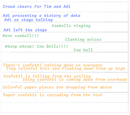 This is a series of observations from the audience at Confluent’s Current conference developer keynote. Give me five of the best/funniest messages